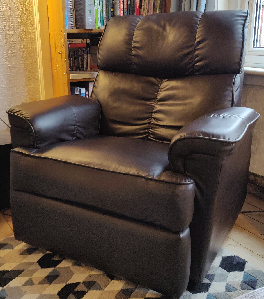Skinu manual recliner chair lazy boy sofa, brown.
